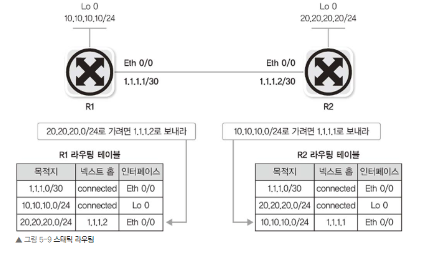 - 관리자가 목적지 네트워크와 넥스트 홉을 라우터에 직접 지정해 경로 정보를 입력하는 것